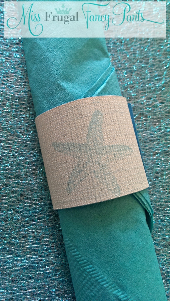 Those hanging seahorses were actually super ugly, multi-colored fabric decorations my mom found at a thrift store. They were hideous! But we knew we were going to spray paint everything so we were able to overlook their original state. You could probably make some, though. Maybe find a fabric that works with your color scheme and trace/cut a seahorse pattern twice. Stuff with a little bit of fiberfill (or even paper) and sew or glue together. If you can’t find the right fabric, spray paint whatever you have! 🙂