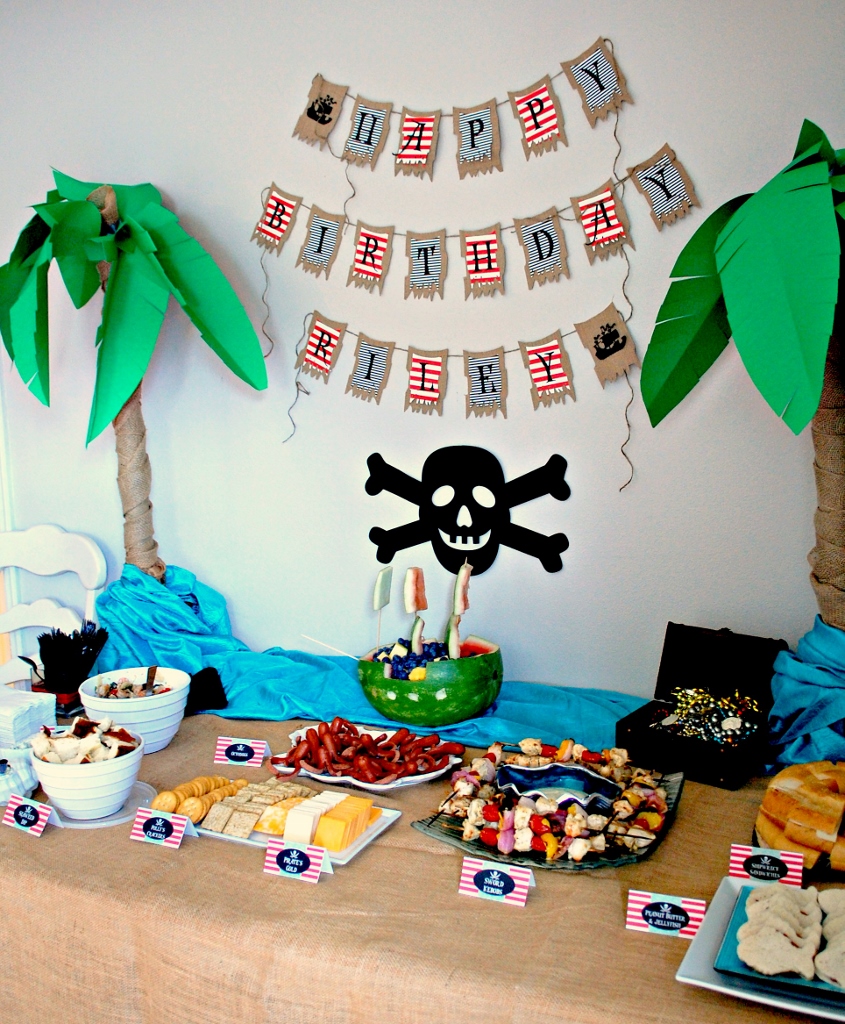 Since we live in the Tampa Bay area, we are very familiar with living the life of a pirate. Growing upΒ with Gasparilla means learning to speak Pirate at a very early age, mateys. Fortunately, this makes it much easier to throw a Pirate Birthday Party without a ton of effort. We tend to have random pirate themed decor on hand from years of build up.